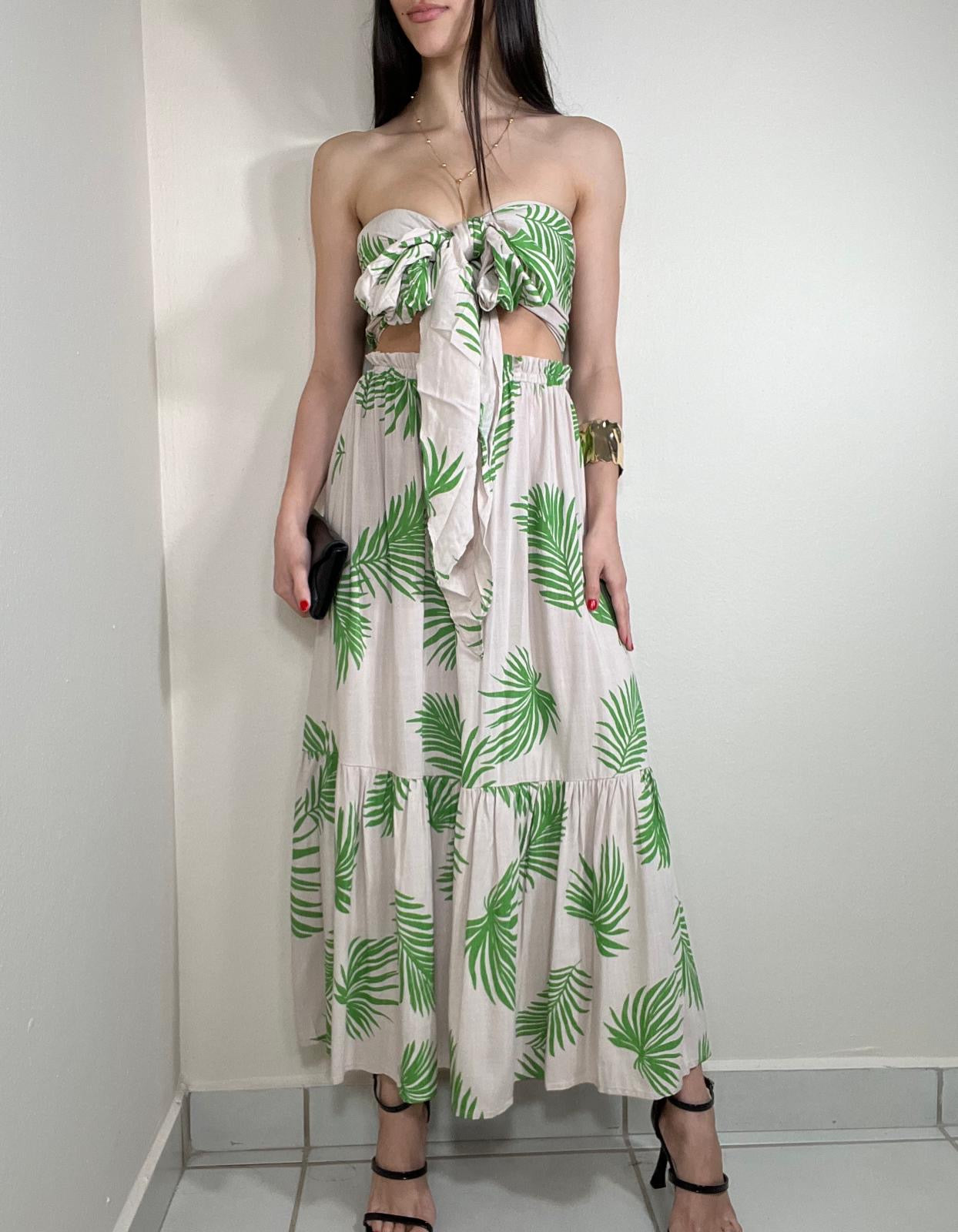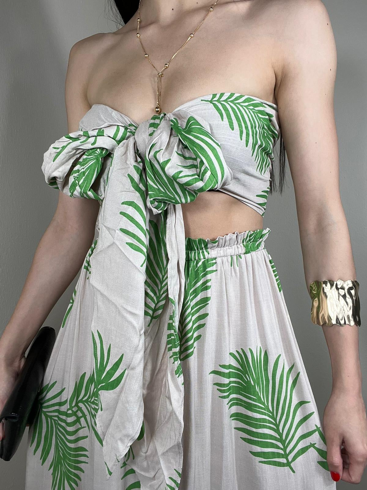 - Tube Tie Front Chest Crop Top & High Waisted Midi Skirt