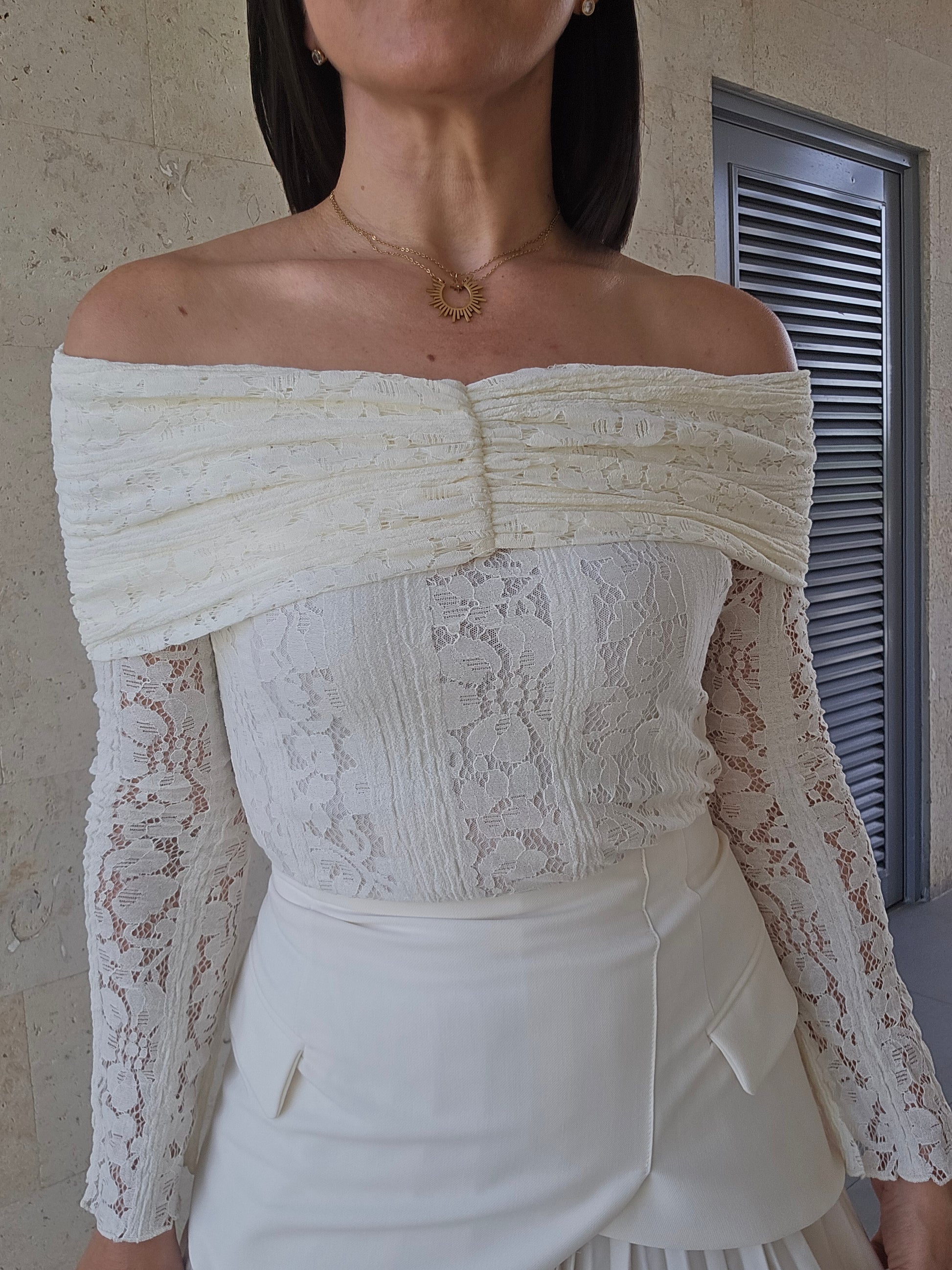 ✨ Chic Romantic Lace Long-Sleeve Off-Shoulder Top ✨
