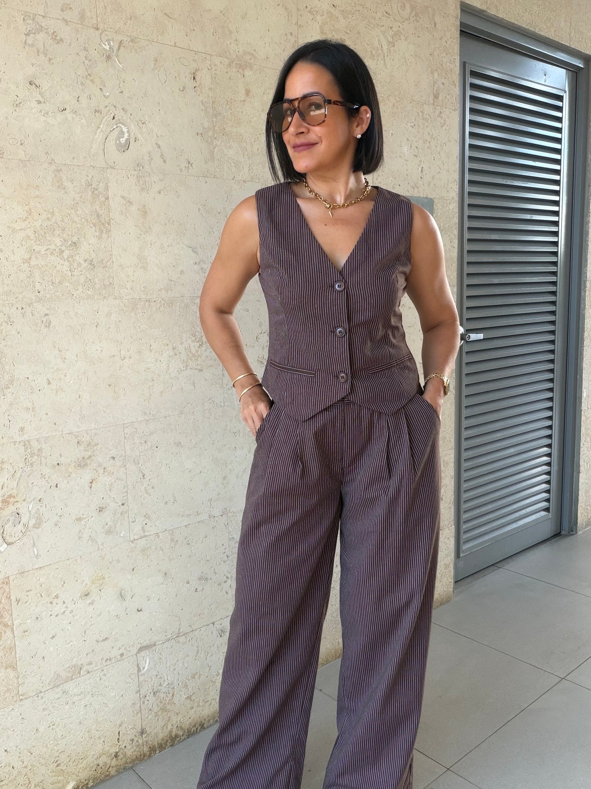 ✨ Stripe Button-Down Vest & Pant Set ✨