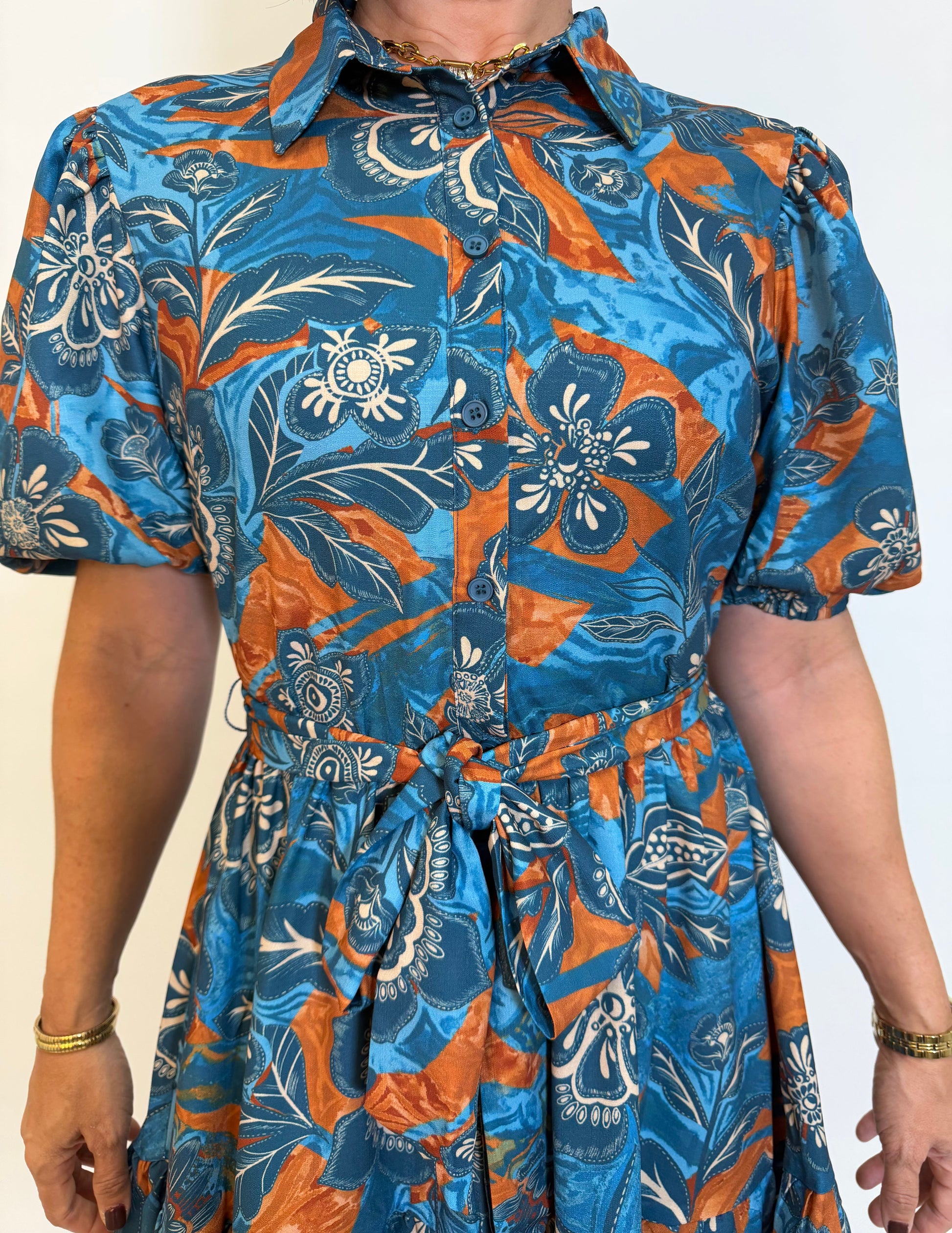 ✨ Printed Button Down Ruffle Hem Mini Dress ✨