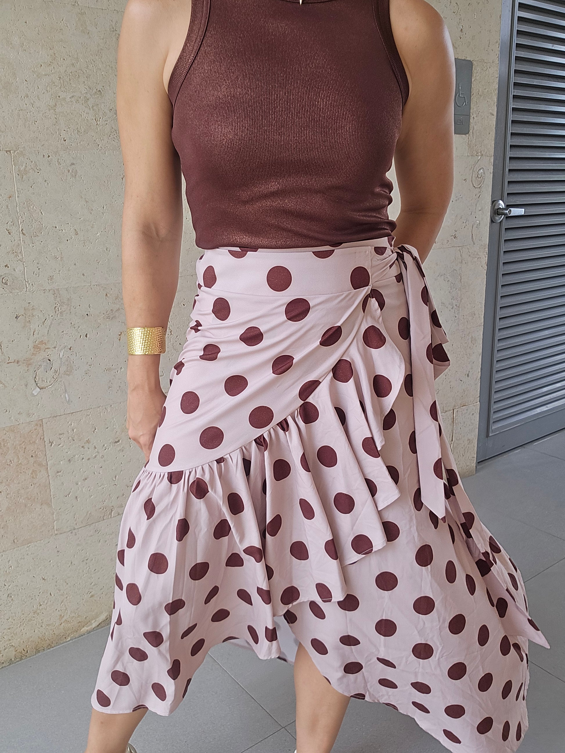 ✨ Chocolate Polka Dot Open Wrap Belted Skirt ✨