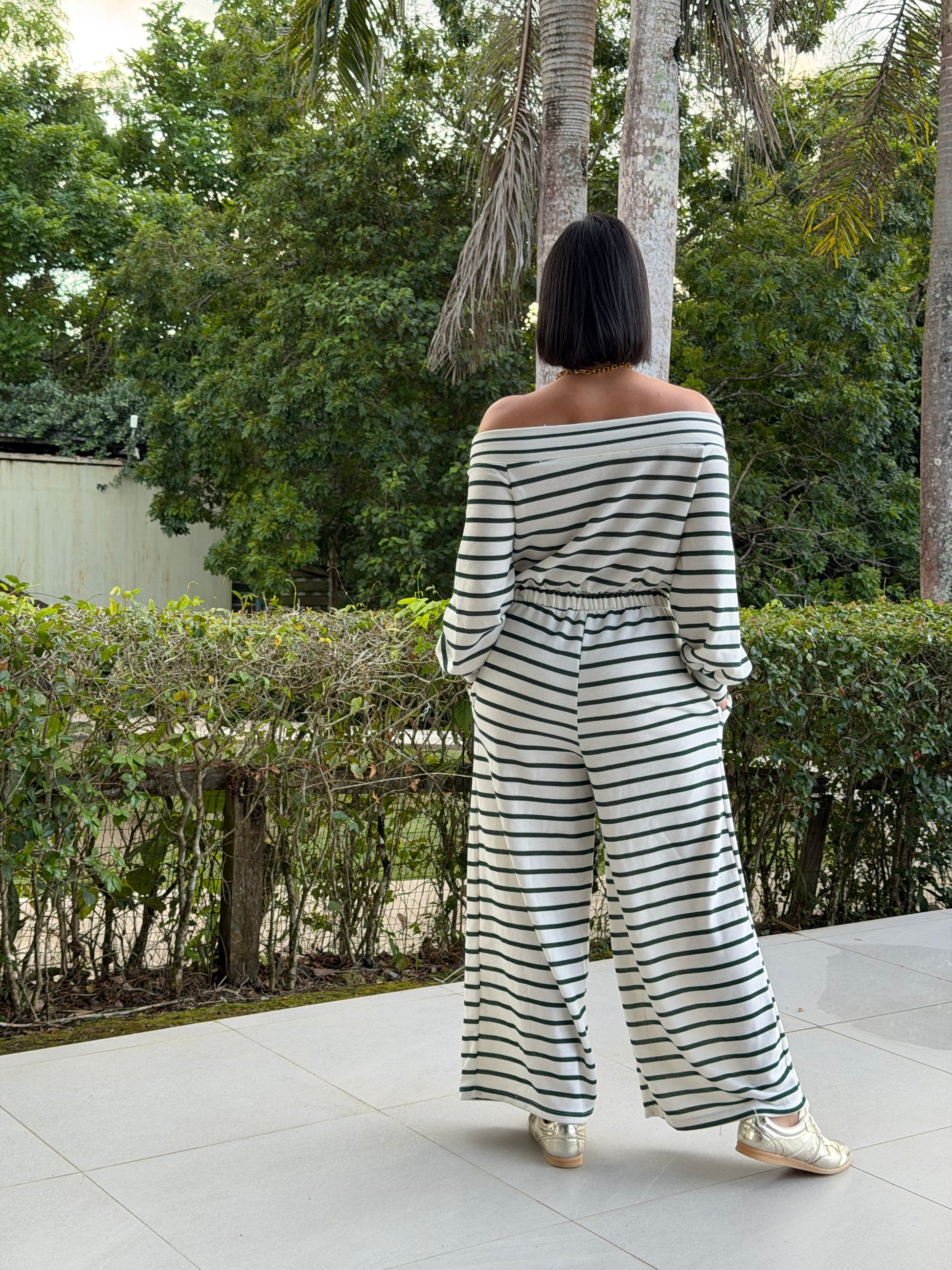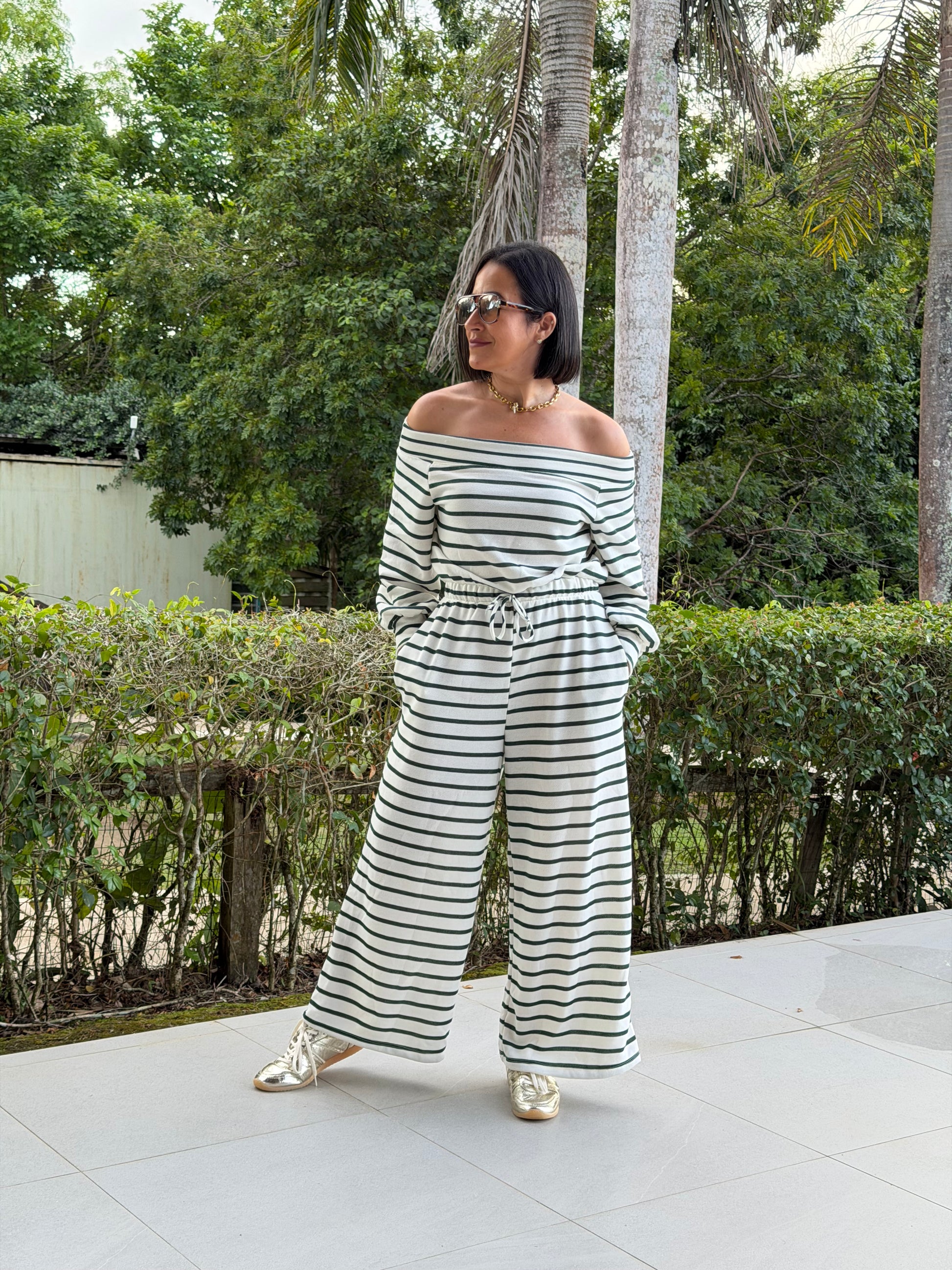 ✨ Off-Shoulder Striped Terry Jumpsuit ✨